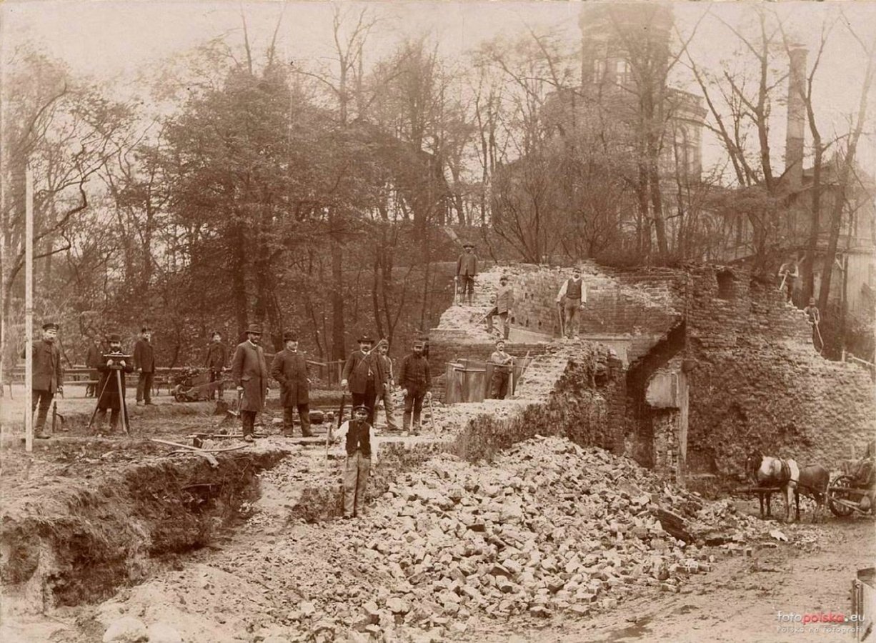 1895, Wzgorze Partyzantow - Bastion Sakwowy. Rozbiorka baszty i murow obronnych z pierwszej polowy XIV wieku