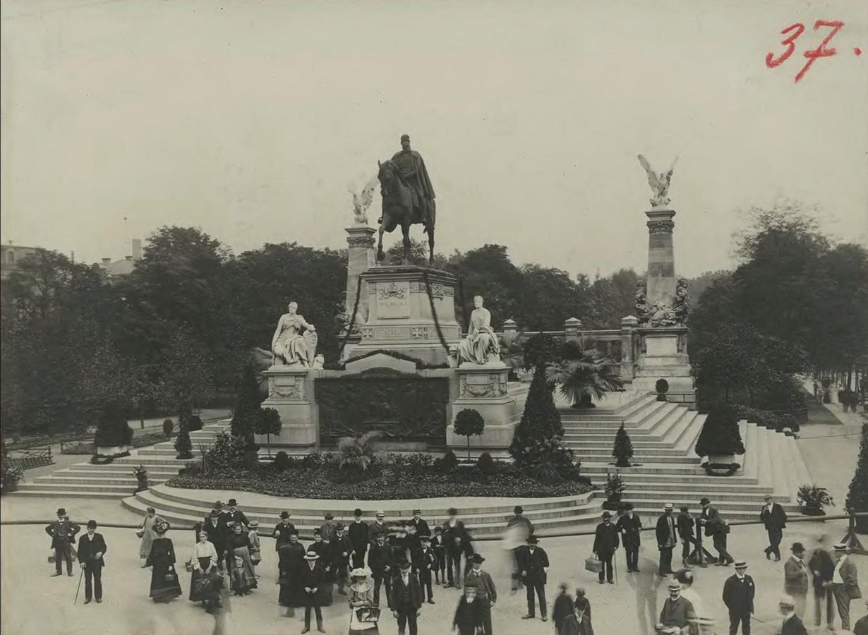 1906, ul. Swidnicka. Uroczyscie przystrojony pomnik cesarza Wilhelma I z okazji wizyty cesarza Wilhelma II